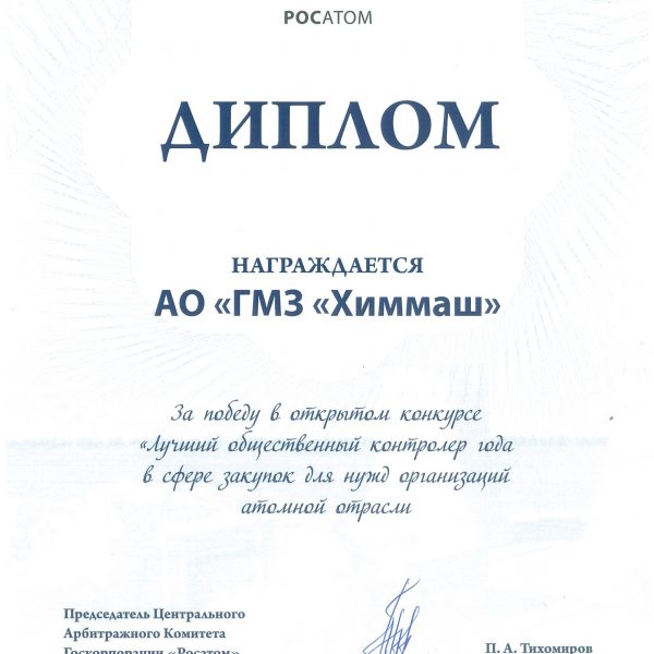 August 11, 2016 JSC “GMZ “Himmash” was declared the winner in the bidding for the right to conclude a contract…
