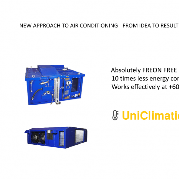 Air conditioning units designed by JSC «GMZ «HIMMASH» based on the principle of indirect evaporative cooling (IEC). Does not require the use of chemical refrigerant (freon) and has very low power consumption.