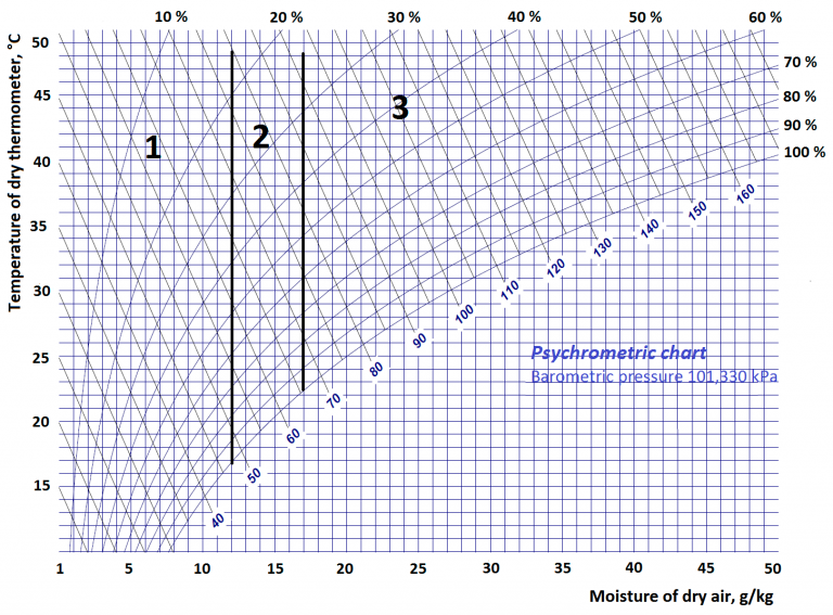 There`re two categories of application of air-conditioning systems: comfort application for a man, process application for machines. The diagram below shows clearly three areas which would determine composition of the units and necessity of additional freon systems.